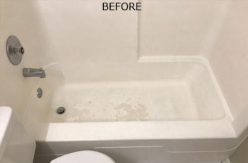 Acrylic tub refinishing is very common. These tubs have a wide range of sizes, styles and colors. When new, the acrylic surface is nice and shiny. As time goes on however, your acrylic tub's surface can dull, get damaged by acidic or abrasive cleansers or look outdated. The original homeowner's choice of "yellow" may not go with your neutral decorating theme. The tub can be nicked or scratched by objects being dropped onto the surface. Occasionally the bottom is not supported correctly during installation, causing the bottom of the tub to sag or flex when you step into it. This can create an unsafe situation that can actually cause the tub to crack, resulting in personal injury and property damage. Replacing an acrylic tub is time consuming, expensive and messy. It now becomes the time for a tub resurfacing. This will save up to 80% of the cost of tub replacement. We can do the job in one day, without removing the tub. If there are any repairs to be made, they are done first. Then we use a tried and perfected method recommended by the bathtub reglazing manufacturers to thoroughly clean and prepare the tub before the new surface is applied. Only 24 hours after the new coat is applied, your tub is ready to use. It will have a beautiful luster, and will be easy to keep looking clean and beautiful. So don’t replace that old tub, do a tub reglazing.